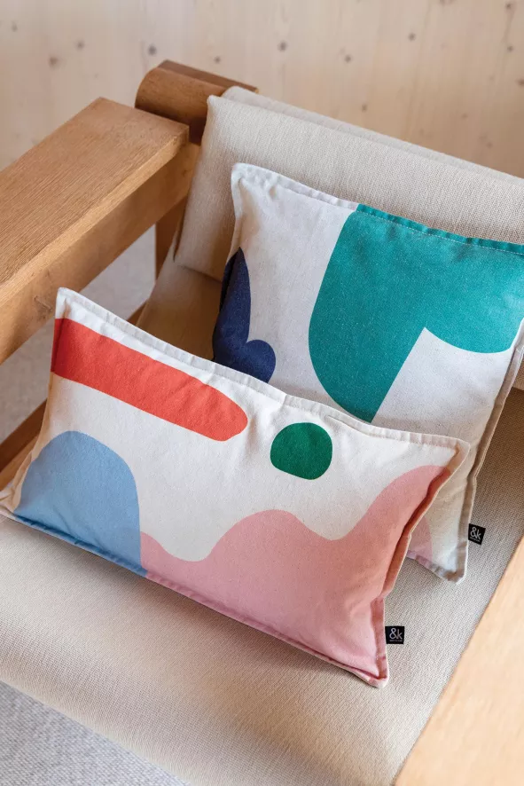 Het Collage kussen 40×40 van &klevering heeft een natuurlijk gekleurde ondergrond met meerkleurige, abstracte vormen erop. Het kussen heeft een lengte en een breedte van 40 centimeter. Het vierkante kussen is gemaakt van 100% katoen. &klevering adviseert het kussen alleen chemisch te reinigen. Het Collage kussen 40×40 is verkrijgbaar in verschillende uitvoeringen. Let op! Het kussen wordt geleverd zonder vulling.
