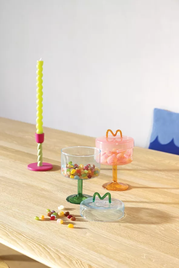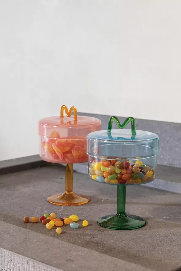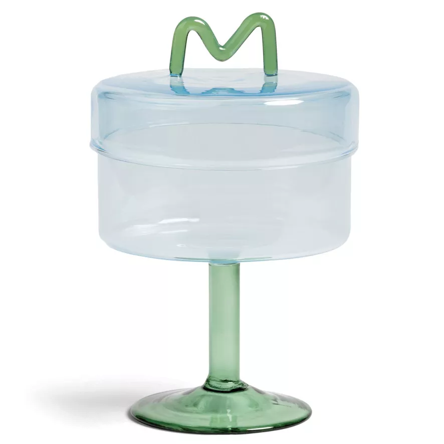 De Flow opberger van &Klevering heeft een diameter van 13 centimeter en een hoogte van 17 centimeter. De opberger is gemaakt van gekleurd glas en is schoon te maken met lauwwarm water. De Flow opberger is verkrijgbaar in verschillende kleuren.
