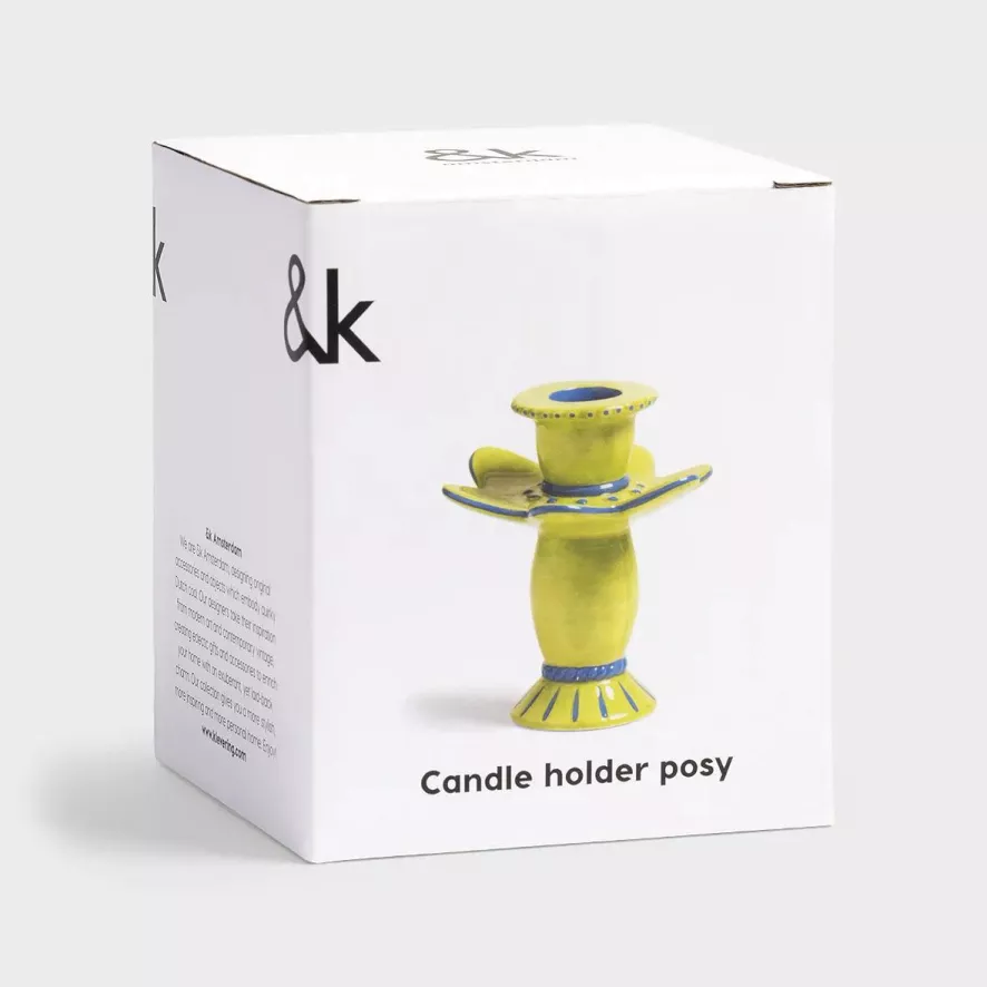 De Posy kandelaar small van &klevering heeft een diameter van 9,5 centimeter en een hoogte van 10,5 centimeter. De kaarsenhouder is gemaakt van dolomiet en is verkrijgbaar in verschillende kleuren. Je kunt de kandelaar schoonmaken met een vochtige doek.